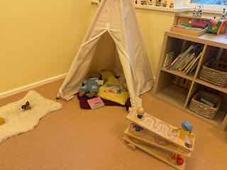 Auch in der Krippe ist eine durch die Pädagoginnen sorgfältig vorbereitete Umgebung wichtig, damit die Kinder gleich nach der liebevollen Begrüßung morgens leicht ins Spiel finden und in der Kita innerlich ankommen.