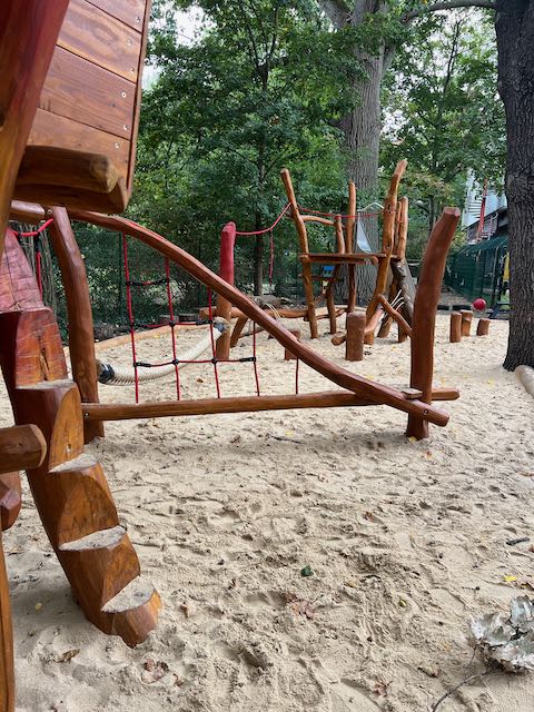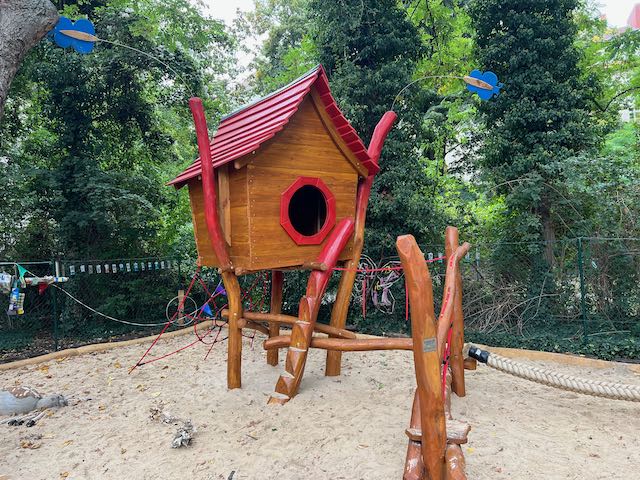 Von der Kita aus blicken und gehen die Kinder direkt auf ihren wunderschön gestalteten kitaeigenen Spielplatz, der sich im ruhigen Essener Park befindet. So können die Kinder täglich unkompliziert an die frische Luft.