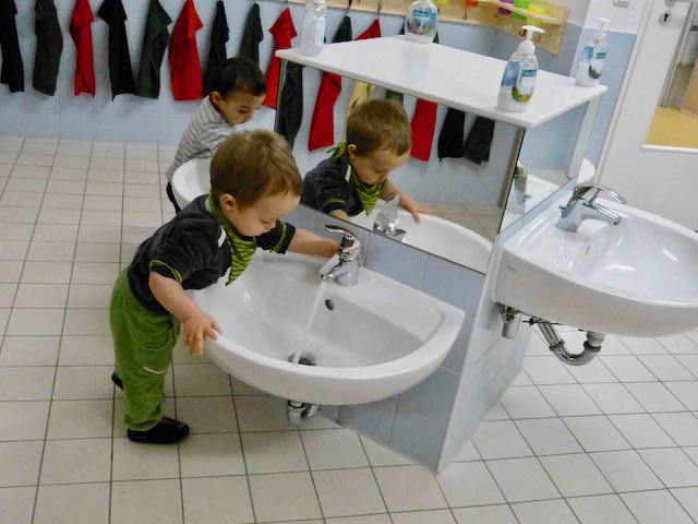 Im Zentrum steht täglich die Eigenaktivität des Kindes, denn nur auf diese Weise lernt es schnell und nachhaltig. Unser Tag gleitet durch einen regelmäßigen Tagesrhythmus, den die Kindern Orientierungsqualität verleiht und eine große Selbständigkeit ermöglicht. Wir arbeiten in drei altershomogenen Gruppen; jede Gruppe hat ihren eigenen Gruppenraum und ihre festen Gruppenerzieher:innen.