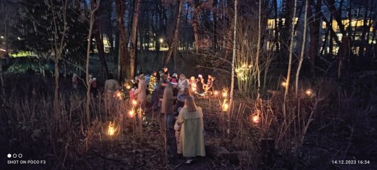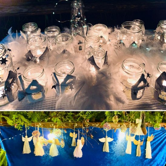 Letzten Donnerstag wurde aus unserem Wäldchen ein Zauberwald. Tagsüber halfen die Kinder beim Schmücken. Gesammelte Gläser mit Kerzen wurden nach Anweisung der Kinder aufgehängt. Lichterketten ergänzten die zauberhafte Stimmung, die ihren Höhepunkt am Lagerfeuer erreichte. Bevor wir uns zum gemeinsamen Singen am Feuer trafen, hatten alle die Gelegenheit, sich an der Kuchentafel mit Kaffee oder Kakao zu stärken. All die Leckereien wurden von den Eltern mitgebracht. Unser kleiner Weihnachtsbasar wurde freudig bestaunt und fast alle Werke fanden, gegen eine Spende, den Weg nach Haus. ( Die Spenden werden natürlich für die Kinder verwendet). Die zauberhafte Stimmung im Wäldchen klingt noch nach und bleibt den Kindern und ihren Eltern sicher in schöner Erinnerung.