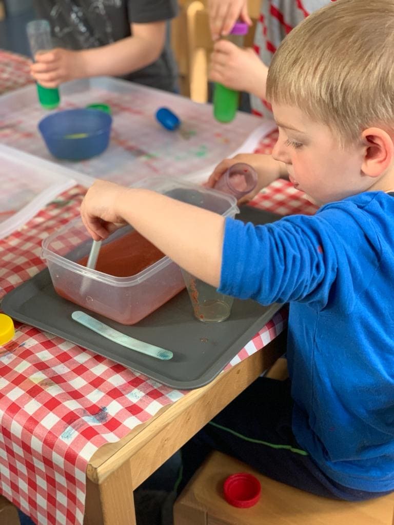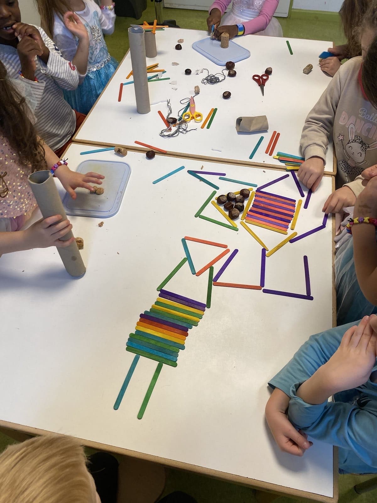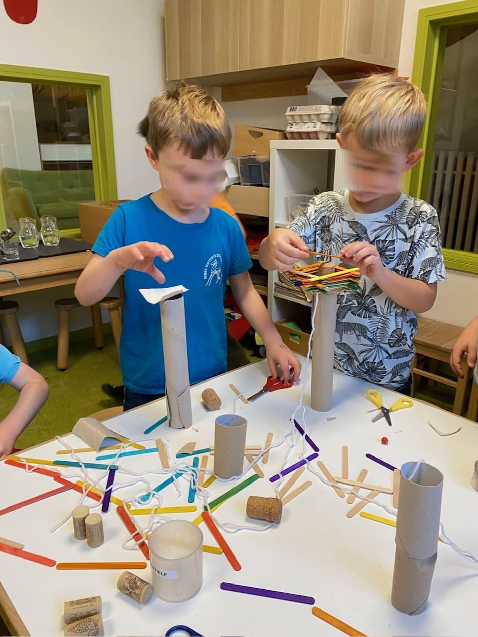 Beim Basteln üben sich die Kinder in ihren Fingerfertigkeiten, sie lernen mit den verschiedenen Materialien umzugehen, erschaffen etwas eigenes und entickeln einen Sinn für Kompositionen in dieser vielfältigen Welt.